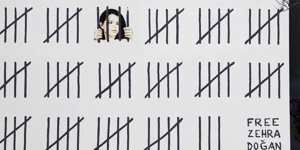 Es ist ein Mural an der „Houston Bowery Wall“ auf der sich bereits 1982 der heute weltbekannte Künstler Keith Haring als Erster verewigt hat. In seinem Werk hat Banksy auf die willkürliche Inhaftierung der kurdischen Künstlerin Zehra Dogan aufmerksam gemacht, die für das Anfertigen einer regierungskritischen Aquarellzeichnung zu gut drei Jahre Gefängnis verurteilt wurde.
