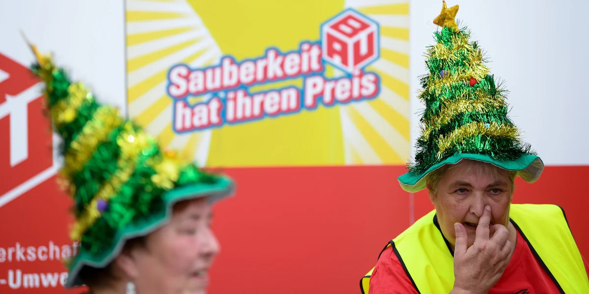 Reinigungskräfte demonstrieren für einen fairen Rahmentarifvertrag: Überstundenzuschläge, 30 Tage Urlaub und Weihnachtsgeld.