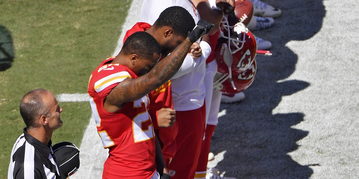 Beim großen Saisonauftakt am vergangenen Sonntag mit dreizehn stattfindenden Partien, zugleich Jahrestag der Anschläge vom 11. September, bekam der Protest nun eine neue Form. Mit der hochgereckten Faust standen einige der Footballer zur Hymne da, zum Beispiel Defensivspieler Marcus Peters von den Kansas City Chiefs, Martellus Bennett und Devin McCourty von den New England Patriots und drei weitere Spieler der Tennessee Titans.