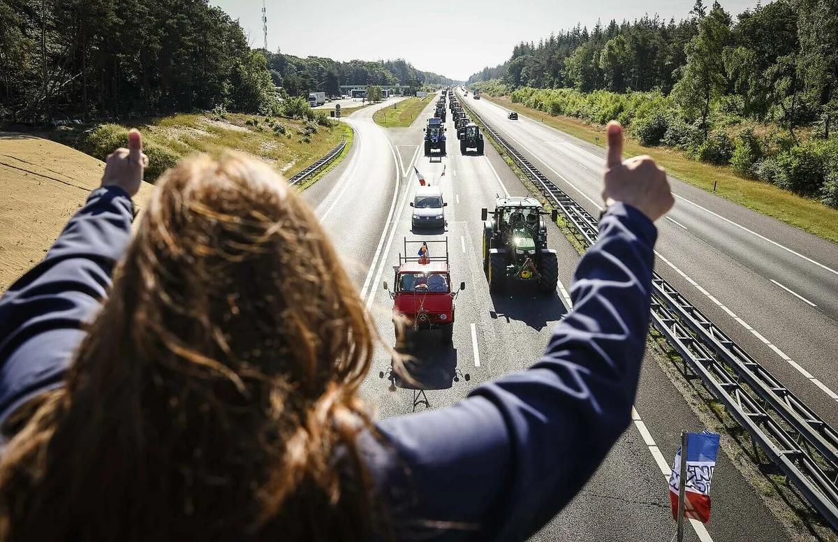 Massenhaft bekannt wurde das Symbol im Juni, als sich zehntausende Bäuer*innen in Stroe versammelten, einem winzigen Dorf ziemlich genau in der Mitte des Landes. Bei ihrer Kundgebung gegen den Regierungsplan, die Stickstoff- Emissionen bis 2030 zu halbieren, waren die Flaggen deutlich sichtbar. Stickstoffoxide und Ammoniak, zu denen der Stickstoff in der Luft reagiert, sind Vorläufersubstanzen von gesundheitsgefährdendem Feinstaub und Ozon, sie schädigen Ökosysteme.