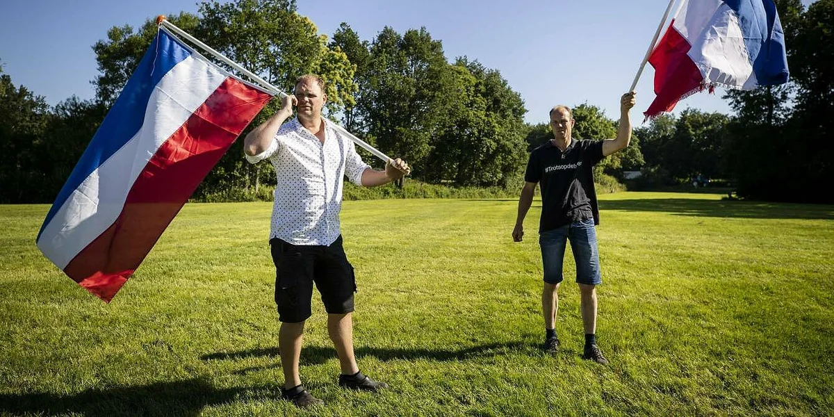 In Albergen, einem anderen Dorf, rund 90 Kilometer östlich von Stroe nahe der deutschen Grenze, tauchte die umgedrehte Flagge im Hochsommer auf. Die niederländische Regierung hatte kurz zuvor beschlossen, Kommunen keine Mitbestimmung zu gewähren, in denen sie Asylbewerber*innen unterbringen will. Weil der Bedarf an Unterkünften viel größer ist als die Bereitschaft zur Aufnahme, kaufte die Regierung im 3.000-Seelen-Dorf Albergen ein Landhotel, um dort 300 Personen unterzubringen. Wenig später zogen etwa 500 protestierende Menschen durch Albergen, in Sommerkleidung, manche mit Kindern im Bollerwagen, in der Hand eine blau-weiß-rote Fahne.
