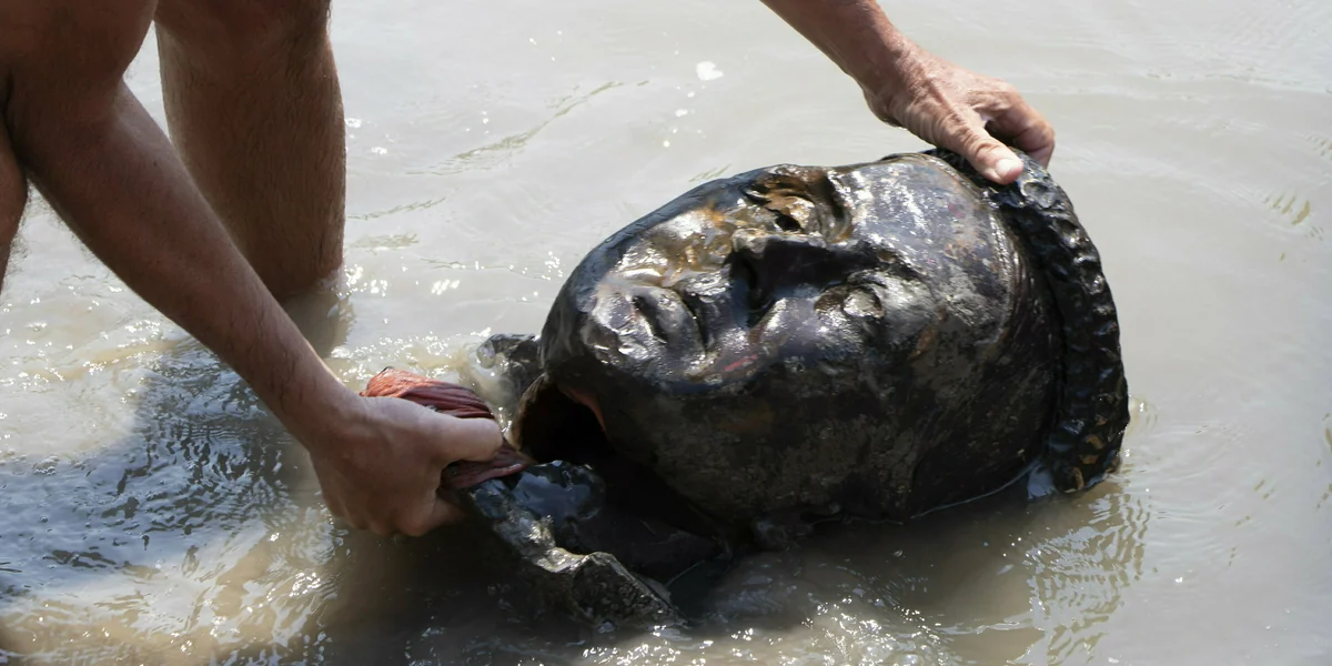 dpa | Deutliche Spuren eines aufgeheizten Nationalfeiertags: Nachdem es am Donnerstag in Kanada zu mehreren Akten von Vandalismus gekommen war, ist der abgeschlagene Kopf einer Statue der britischen Königin Victoria aus einem Fluss geborgen worden. Ein Fischer hatte das Objekt in Winnipeg aus dem Wasser gezogen, wie auf Fotos vom Freitag zu erkennen war. In der Stadt in der zentralkanadischen Provinz Manitoba war am „Canada Day“ zudem die Statue von Königin Elizabeth II von wütenden Demonstranten gestürzt worden.