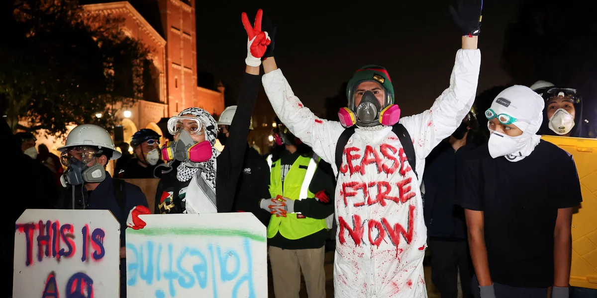„Aus unseren Geheimdienstquellen wissen wir, dass am Abend die Räumung bevorsteht“, sagt einer der Organisatoren der Gruppe Students for Justice in Palestine. Seine Aufgabe ist, Neulinge zu schulen, wie sie im Falle einer Eskalation reagieren sollen. In der Nacht zu Donnerstag (Ortszeit) begann ein Großaufgebot der Polizei tatsächlich mit der Räumung des Protestlagers. Aktivisten versuchten die Polizisten aufzuhalten. Sie skandierten „schiebt sie zurück“. Einige hielten provisorische Schutzschilde und Regenschirme in den Händen, andere wappneten sich mit Helmen, Schutzbrillen und Atemschutzmasken, wie auf TV-Bildern zu sehen war.