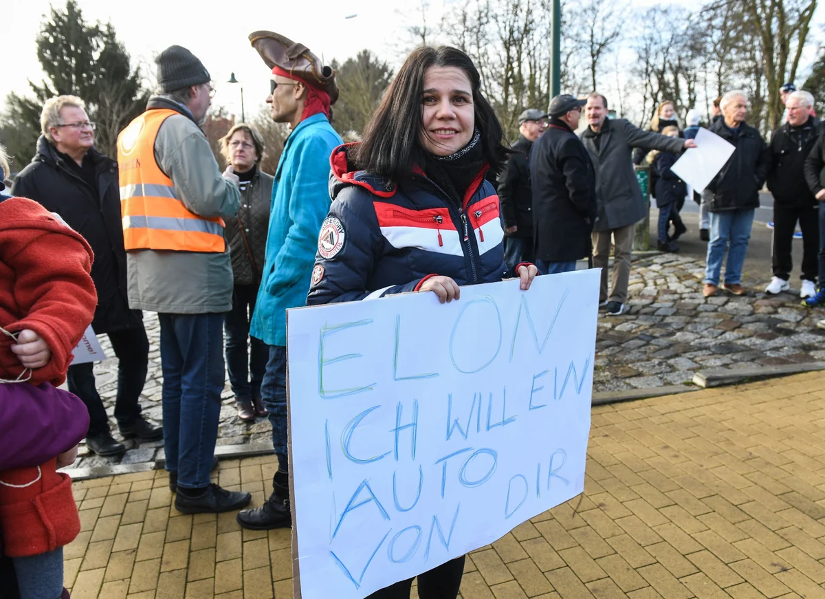 Am 11. Januar gründet sich die Bürgerinitiative Grünheide, einen Tag später protestieren mehrere Dutzend Demonstranten gegen Tesla. Weitere Demos folgen. Das wiederum mobilisiert Tesla-Befürworter. Binnen Tagen werden die Straßen von Grünheide zum Kampfplatz, zumindest verbal. Ein Tesla-Gegner ruft: „Ami, go home!“ Eine Tesla-Freundin hält ein Schild: „Elon, ich will ein Auto von dir!“