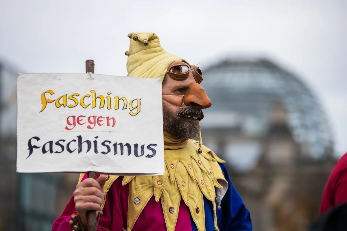 Ein Demonstrant in Berlin
