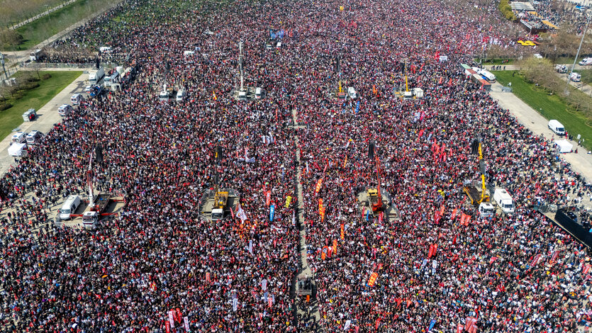 afp/dpa | In der Türkei haben sich am Samstag zu den Protesten der Opposition in Istanbul gegen die Regierung von Präsident Recep Tayyip Erdoğan hunderttausende Menschen versammelt. Die Menschen kamen auf der asiatischen Seite der Bosporus-Metropole zusammen, um nach der Inhaftierung des Bürgermeisters Ekrem İmamoğlu für den Erhalt der Demokratie in der Türkei zu demonstrieren, wie AFP-Reporter berichteten. Der Chef der größten Oppositionspartei CHP, Özgur Özel, sprach bei der Kundgebung sogar von mehr als zwei Millionen Teilnehmern.