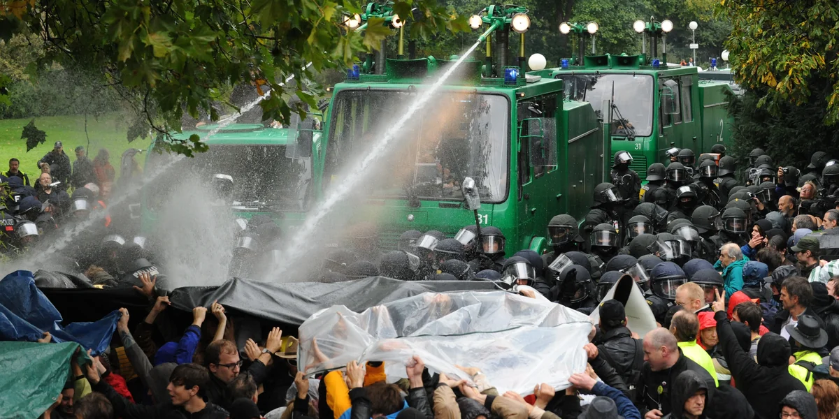 Die Einsatzleiter hätten dadurch auf Rückzug gehofft. Sie hätten eine Panik verhindern wollen, kein zweites Duisburg produzieren, wo bei der Loveparade Menschen in einer Massenpanik gestorben sind, sagt der Verteidiger der angeklagten Einsatzleiter vor Gericht. Die Strategie geht nicht auf. „Durch das Wasser kamen immer mehr Leute“, sagt der Wasserwerferstaffelführer. Die Aggression nahm halbstündlich zu. „Meine Theorie: Auch weil ziemlich viel Pfefferspray benutzt werden musste.“
