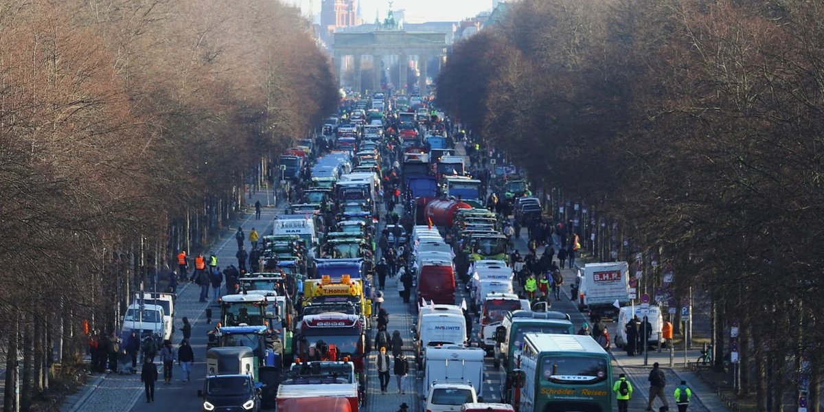 Auf der Straße des 17. Juni sind dann neben Traktoren auch auffällig viele Lastwagen und Kleintransporter zu sehen, die nicht zu landwirtschaftlichen Betrieben gehören, sondern zu Speditionsfirmen oder eben Handwerksunternehmen. Das Mobilisierungspotenzial einer Demonstration gegen „die da oben“ und „das System“ ist offenkundig groß – trotz Warnungen, dass Rechtsextreme maßgeblich an den Protesten beteiligt sind.
