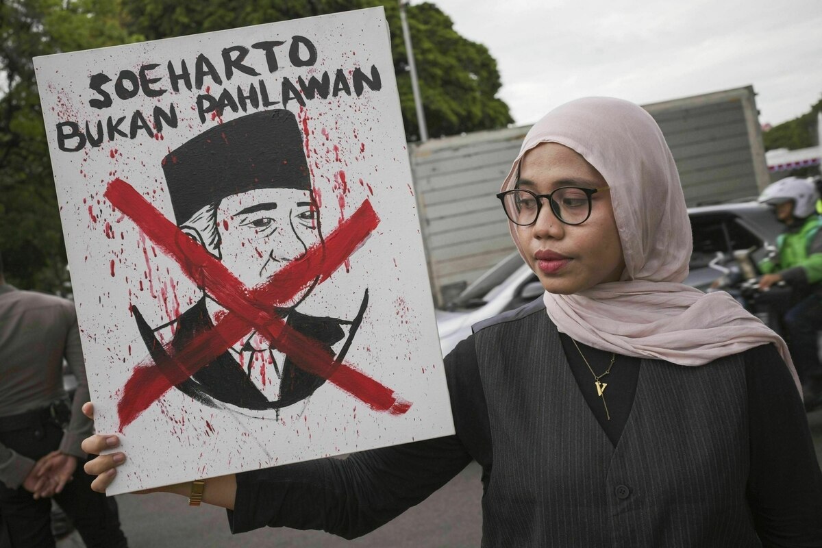 Protest dagegen, den verstorbenen indonesischen Präsidenten Suharto zum Nationalhelden zu ernennen, Jakarta, Indonesien, 6. November 2025 Foto: Kyodo/picture alliance