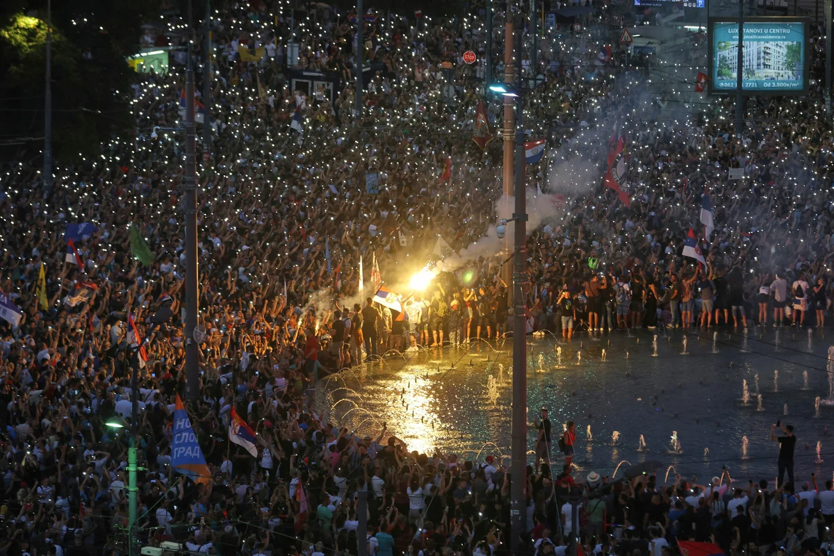 An der Demonstration in Belgrad hatten nach Schätzungen der Organisation Archiv öffentlicher Versammlungen etwa 140.000 Menschen teilgenommen. Die Polizei sprach von nur 36.000 Teilnehmern, laut den AFP-Reportern vor Ort und Luftbildern waren es aber deutlich mehr. Die Gewalt brach nach einem stundenlangen friedlichen Protest aus.