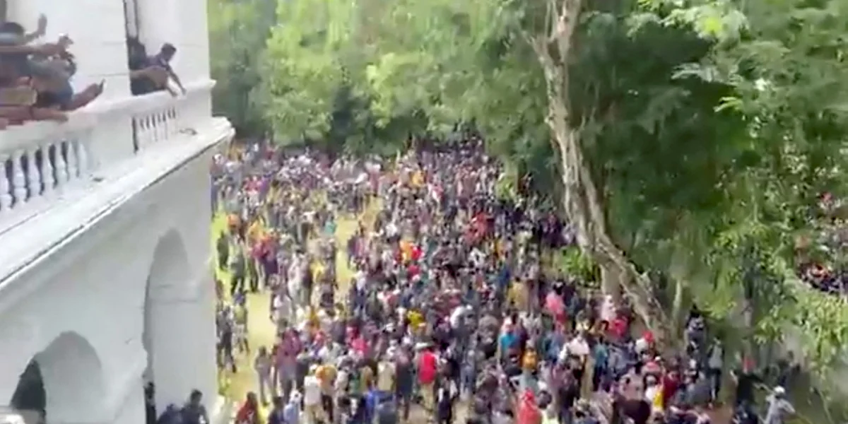 Vor der Stürmung des Amtsitzes waren die Demonstranten durch das Zentrum der Metropole Colombo gezogen. Sie skandierten Slogans gegen den Präsidenten und schwenkten Flaggen des Landes. Dabei gelang es ihnen auch, Absperrungen der Polizei zu durchbrechen. Diese feuerte zwar Warnschüsse ab. Es gelang ihr aber nicht, die Demonstranten aufzuhalten.