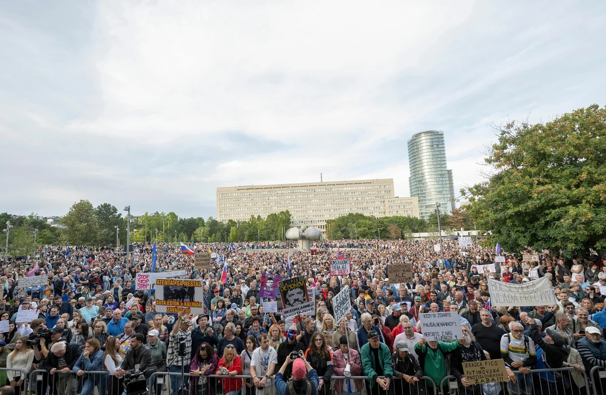 Drastische Sparmaßnahmen der slowakischen Regierung und ihre prorussische Haltung bringen erneut Zehntausende im ganzen Land auf die Straße.