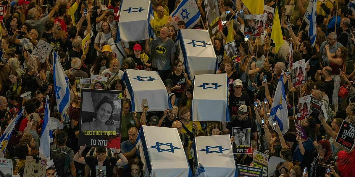 Die Ermordung von sechs israelischen Geiseln durch die Hamas am vergangenen Wochenende lässt seitdem jeden Abend Zehntausende in ganz Israel auf die Straße gehen.