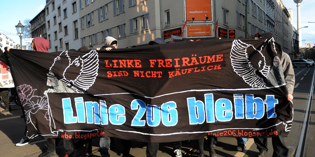 Noch nicht verdrängt worden ist hingegen das Hausprojekt Linie 206, dessen verwilderte Fassade in der durchgentrifizierten Spandauer Vorstadt wie ein Fremdkörper wirkt. Dabei erlebte das 1990 besetzte Haus zahlreiche Eigentümerwechsel und damit auch Versuche, das Hausprojekt loszuwerden.