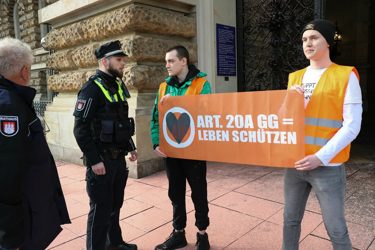 Der 26-jährige H. ist angeklagt, im März 2022 „gemeinschädliche Sachbeschädigung in Tateinheit mit Sachbeschädigung“ begangen zu haben, als er mit einem anderen Mitglied der Letzten Generation das Hamburger Rathaus mit orangener Farbe besprühte. Danach entrollten sie ein Transparent, auf dem stand: „Artikel 20a Grundgesetz = Leben schützen“. Es gab schon einen Prozesstermin Anfang Januar, zu dem H. nicht erschienen ist. „Es ist unglücklich gelaufen“, sagt er dazu, „ich habe mein Leben nicht so im Griff“. Aus seinem Griff hat es sich etwa zur Zeit der Sprühaktion gelöst und es scheint, dass das Gefühl des Scheiterns viel damit zu tun hat.