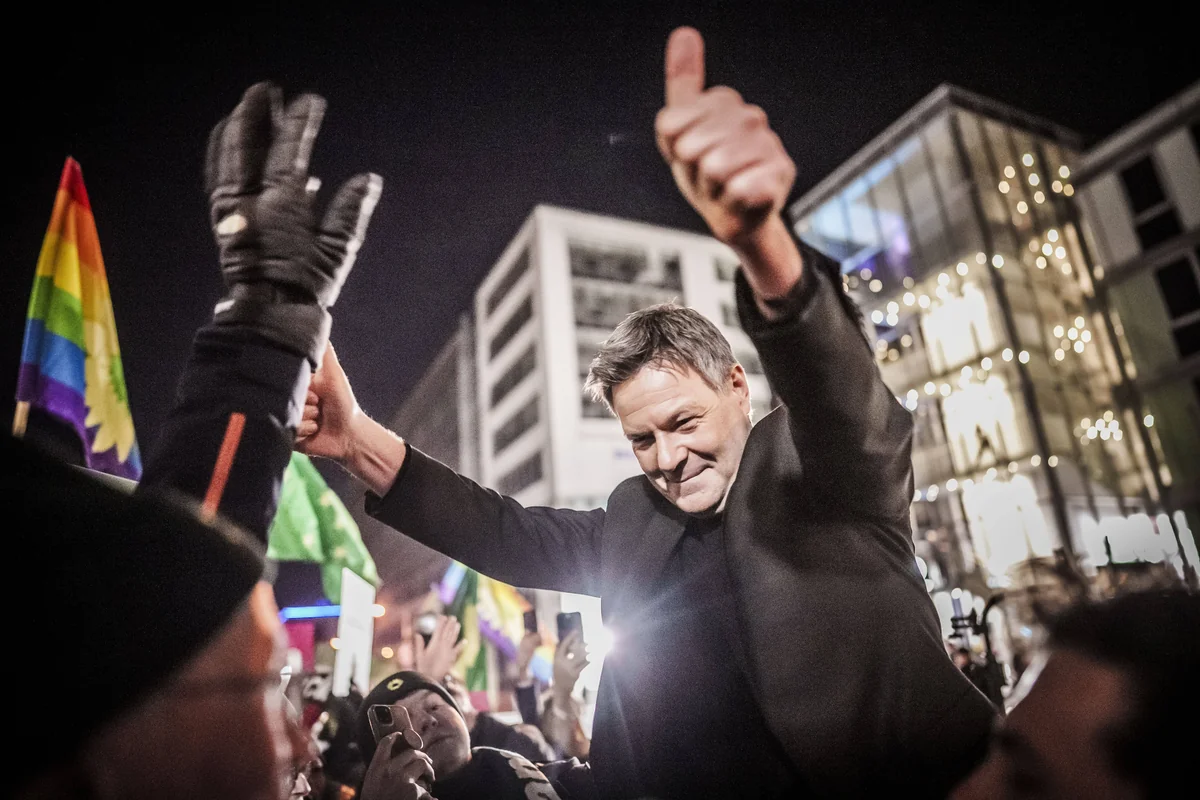 Ein wenig im Abseits stehen die Fans der AfD. Auch die Grünen sind mit einer Anhängerschaft angereist, die immerhin so groß ist, dass sich davon Bilder machen lassen, die suggerieren, der grüne Kanzlerkandidat nehme ein Bad in der Menge. Natürlich wehen auch rote SPD-Fahnen für Olaf Scholz. Unverdrossen feuern ihn seine Fans an, obwohl er in der Tabelle schon einen gehörigen Rückstand hat und kaum mehr einer wirklich an die Titelverteidigung glaubt. „Ihr könnt nach Hause fahren!“, grölen die JU-Ultras und das Portal derwesten.de schreibt von einer „Stimmung wie im Fußballstadion.“