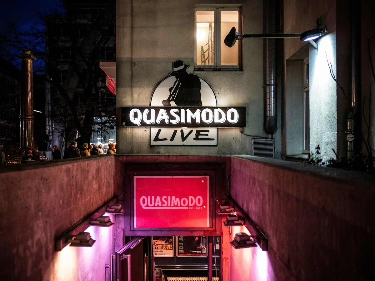Der Club Konzerte gab es unter dem Delphi Theater am Bahnhof Zoo schon Jahrzehnte früher, aber vermutlich 1967 wurde der Keller erstmals als „Quartier von Quasimodo“ zum Live-Club. Nur ein Jahr später sieht der Laden den ersten von vielen Höhepunkten: Das Total Music Meeting, Gegenveranstaltung zum Jazzfest. 1975 kommt Giorgio Carioti, verkürzt den Namen und macht das „Quasimodo“ zu einem der bedeutendsten Live-Clubs Deutschlands. Nicht vor 22 Uhr, weil zuerst das Kino und die Vagantenbühne im gleichen Gebäude ihr Programm beendet haben müssen, spielen Dizzy Gillespie, Chet Baker, Branford Marsalis, Chaka Khan oder Pat Metheny, aber auch Earth, Wind & Fire, Herman Brood oder Supertramp. Das Jazzfest benutzt das Quasimodo immer wieder als Spielstätte, Prince spielt einen legendären Geheimgig. 2006 gibt Carioti die Leitung ab, sein Nachfolger Klaus Spiesberger agiert sehr viel glückloser. Anfang 2017 übernimmt Trinity Concerts, der größte Berliner Konzertveranstalter, die traditionsreichen Räume und engagiert Fee Schlennstedt als neue Clubleiterin und Programmchefin. (tw)