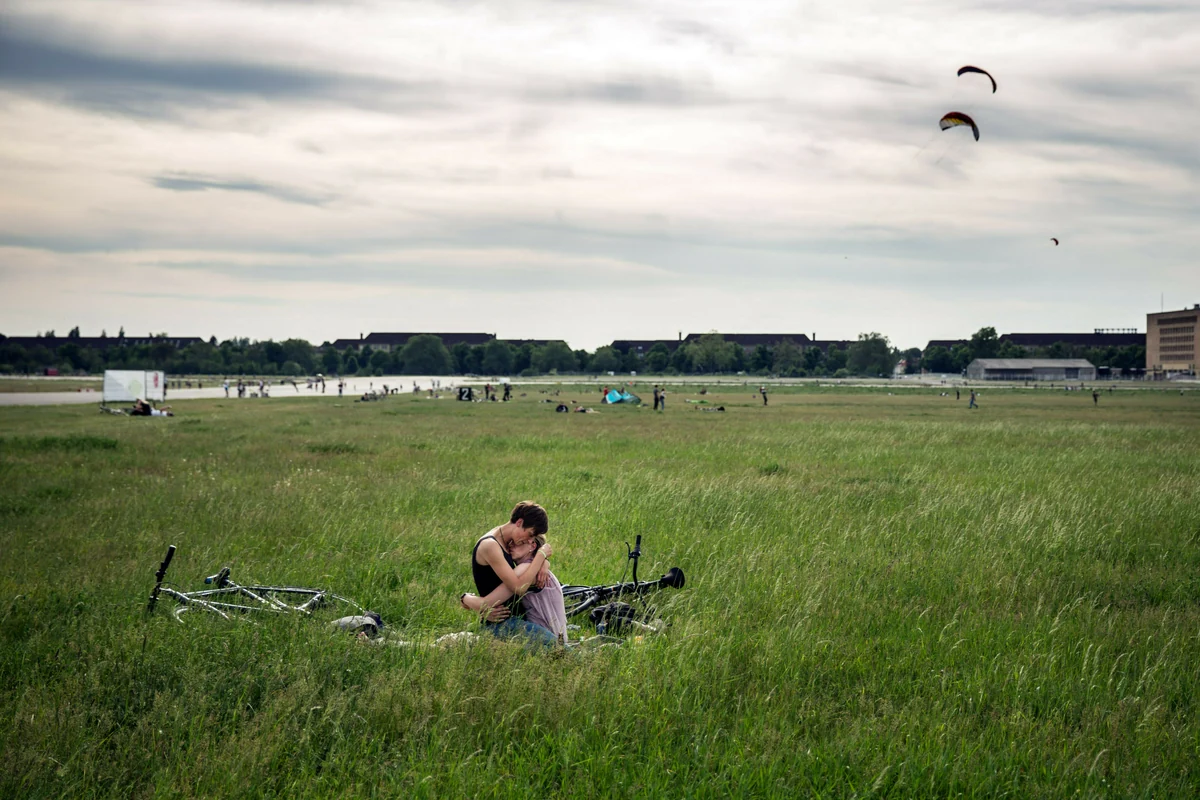 Auch in Berlin noch nicht überall selbstverständlich akzeptiert: ein lesbisches Liebespaar auf dem Tempelhofer Feld Foto: Gordon Welters/laif