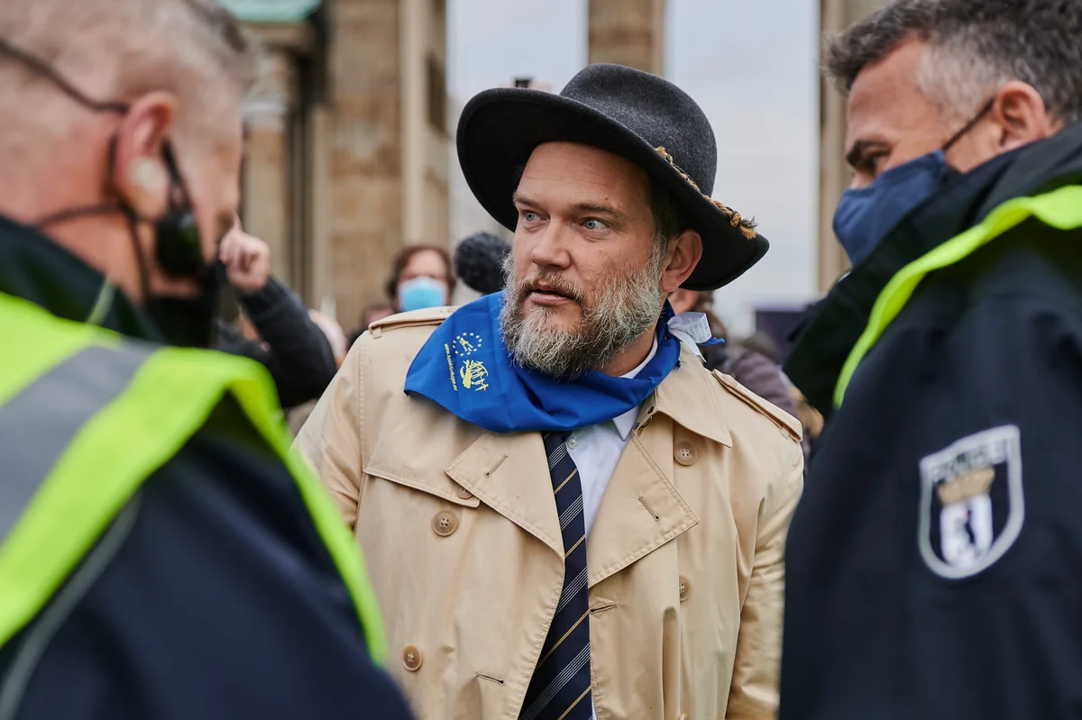 Und genau das geschieht – und längst auch schon transnational. Der rechtsextreme Schweizer Ignaz Bearth und der eidgenössische Verschwörungstheoretiker Roger Bittel laden regelmäßig das Who's who der deutschen Coronaproteste in ihre Videostreams ein. Der Österreicher Alexander Ehrlich hat hierzulande Corona-Bus-Sternfahrten organisiert. Bei den Coronademos in Wien („An uns bricht Eure Nadel“) sind immer wieder deutsche Szenegrößen wie der Ex-AfDler und Onkologe Heinrich Fiechtner oder der Mikrobiologe Sucharit Bhakdi als Redner dabei. Das „Impffrei“-Netzwerk wirbt mit länderübergreifender Vernetzung, auf Telegram gibt es Gruppen wie „Widerstand AT DE CH“, dort werden auch grenzübergreifende Demokalender geteilt.