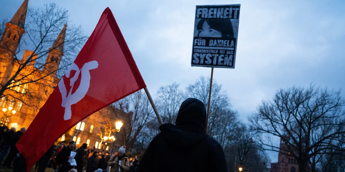 Etwa 200 Menschen solidarisieren sich bei einer Demo mit der festgenommenen RAF-Terroristin Daniela Klette. Die Polizei ist mit 450 Personen vor Ort.