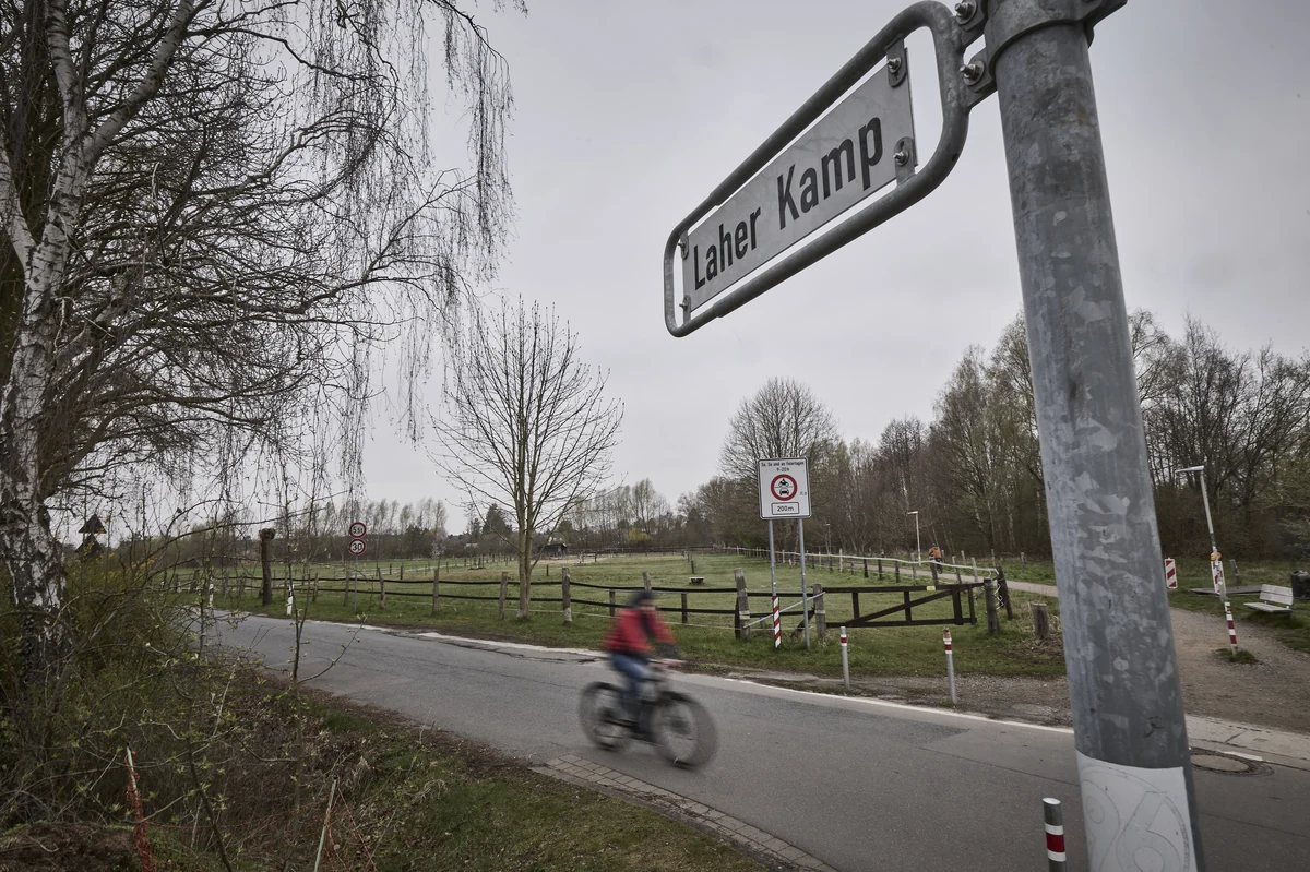 Eigentlich ist der Laher Kamp nicht mehr als ein asphaltierter Feldweg von etwas mehr als einem Kilometer Länge. Bis 2022 hatte die Strecke nicht einmal einen Namen. Der Weg führt ganz hübsch an Pferdekoppeln, Wiesen und einem kleinen Wassergraben vorbei. An manchen Stellen passen keine zwei Autos aneinander vorbei. Ideales Terrain für Gassigänger, Spaziergänger, Radfahrer. Für Letztere sollte er noch tauglicher gemacht werden, als Bestandteil des Veloroutennetzes, das sich bald sternförmig durch ganz Hannover ziehen soll.