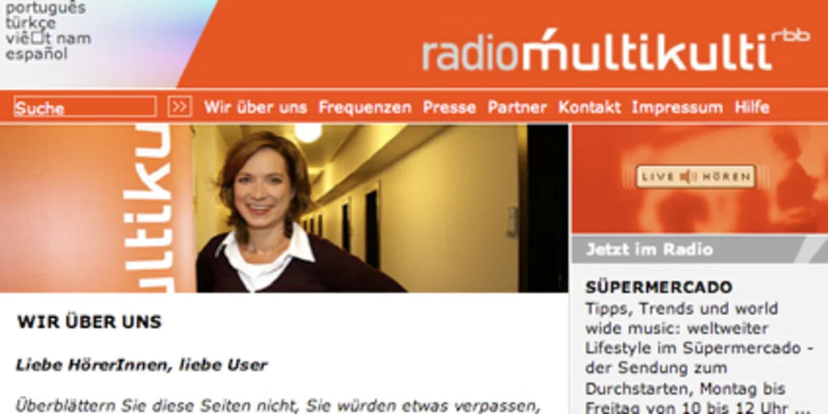 Schließlich leistet Multikulti schon im Programm Außerordentliches: Beim Sender arbeiten Menschen aus über 30 Ländern. Das bedeutet viele Ausblicke über den teutonischen Tellerrand, manchmal ist sogar im Programm Akzent erlaubt. "Radio Multikulti ist gelebte Integration", lautet das Credo von Chefredakteurin Ilona Mahrenbach, und das Programm zeigt es jedenfalls mehr als alle anderen in der großen weiten ARD. Von 6 bis 17 Uhr spricht man hier deutsch, will eine "beidseitig befahrbare Brücke zwischen dem deutschen und nichtdeutschen Publikum" bauen. Wie Mahrenbach das formuliert, klingts zwar etwas pathetisch, ist aber eben mehr als das übliche, früher auch bei anderen ARD-Anstalten gepflegte Gastarbeiter-Radio, wo Menschen in der Sprache ihrer Herkunftsländer mit einem echten Minderheitenprogramm abgespeist wurden. Das "Funkhaus Europa" des WDR, das nun ab 2009 anstelle von Multikulti auch in Berlin sein Programm senden soll, ist hier zwar auch schon weiter.