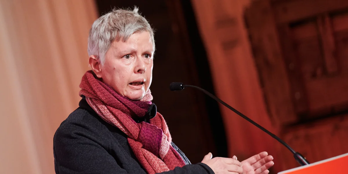 Katina Schubert, geb. 1961, ist Vorsitzende des Landesverbandes der Linkspartei und Mitglied im Abgeordnetenhaus