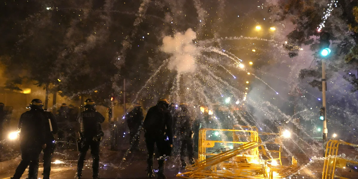 Dichte Rauchwolken hingen über dem Gebiet. Auf Häuserfassaden stand geschrieben „Gerechtigkeit für Nahel“ und „Polizei tötet“. In einer Siedlung im Osten der Stadt hielten die Proteste bis spät in die Nacht an. Als Randalierer Pflastersteine warfen, setzte die Polzei Tränengas ein.