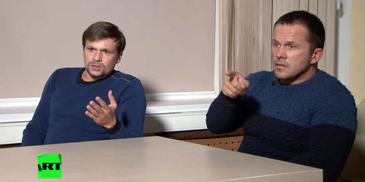 Die britische Polizei hatte Anfang September zwei Verdächtige in dem Fall identifiziert. Mitte September stellten sich diese dann im russischen Fernsehen unter den Namen Boschirow und Petrow als Touristen vor, die wegen der „bekannten Kathedrale“ und des Steinzeitmonuments Stonehenge nach England gekommen seien. Die britischen Ermittler hatten anhand von Überwachungskameras minuziös den Weg der beiden nachgezeichnet. Das Interview hatte weltweit für Hohn und Spott gesorgt.
