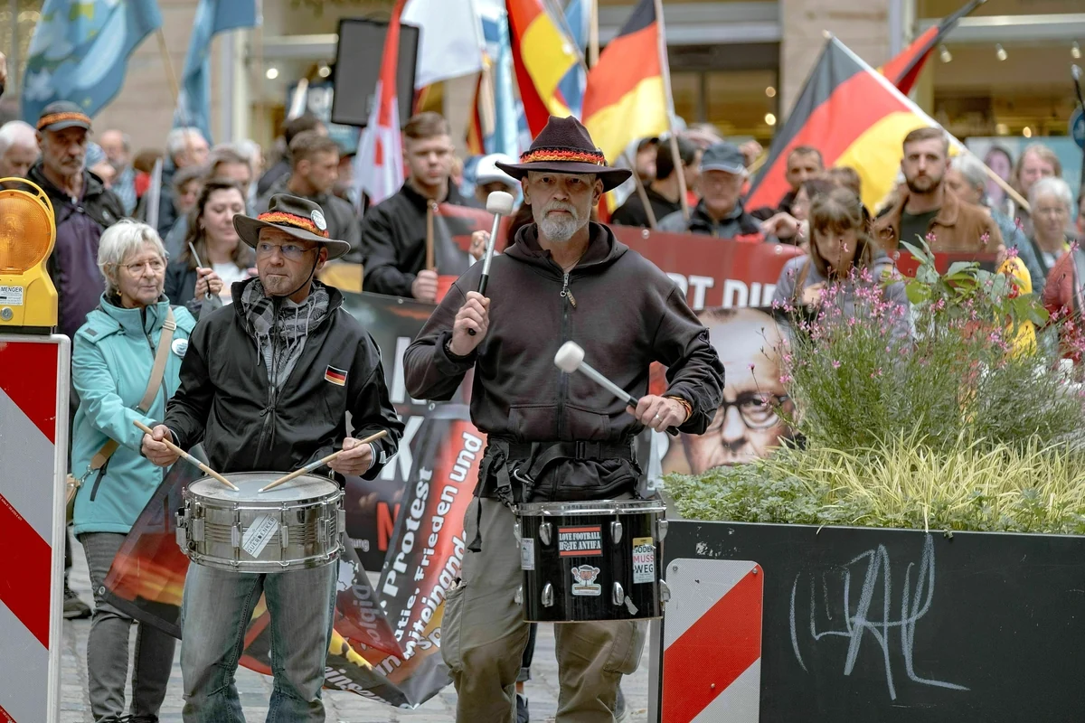 Vor einer Woche zogen sie unter dem Namen „Gemeinsam für Deutschland“ (GfD), zeitgleich zu bundesweit stattfindenden Demos, mit rund hundert Personen durch Nürnberg in die „Straße der Menschenrechte“, in der der israelische Künstler Dani Karavan auf Säulen die Menschenrechte in verschiedenen Sprachen verewigt hat.