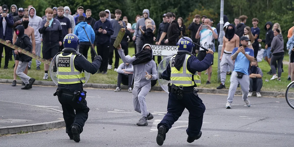 Es war der zweite solche Vorfall am Sonntag nach einer Zusammenrottung vor dem Holiday Inn von Rotherham weiter nördlich in England, wo ebenfalls Feuer im Hoteleingang gelegt wurde, während Polizeibeamte draußen mit geplünderten Sesseln beworfen wurden.