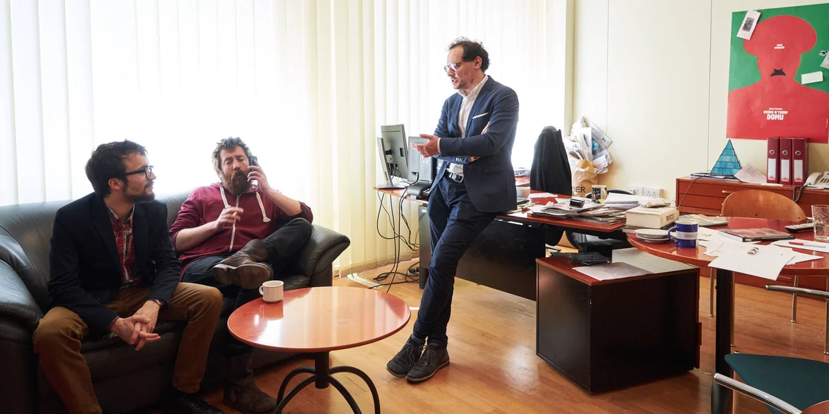 Während der Tarnjacken-Typ mit der Fernbedienung spielt, lässt Dawid Wildstein sich in seinen Stuhl fallen und zündet eine Zigarette an. „Du wirst uns in Deutschland also als irre Rechte darstellen“, sagt er. Die Unordnung stört ihn offensichtlich nicht, Kaffee oder Wasser bietet er nicht an. Allerdings entschuldigt er sich, dass er den Termin mehrfach verschoben hat.
