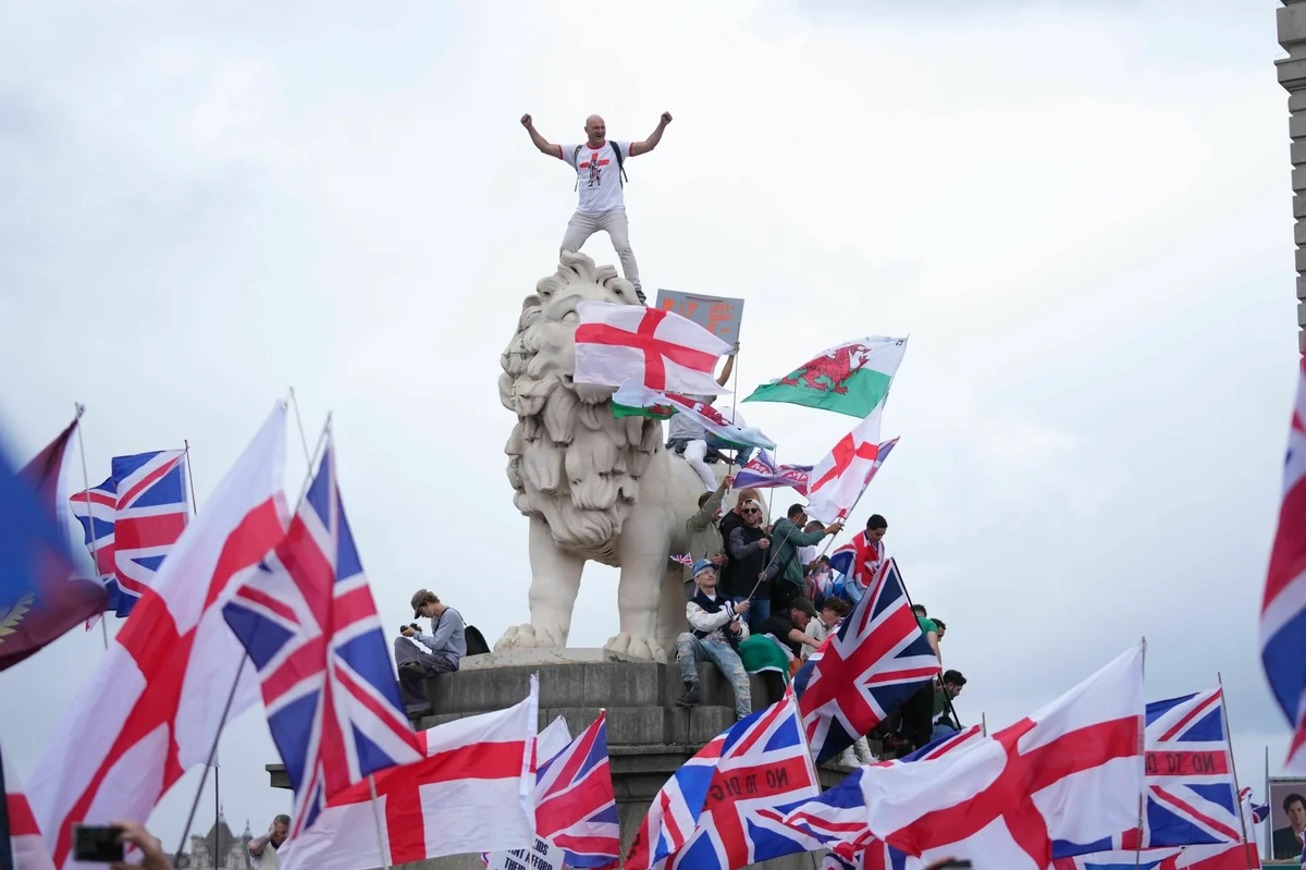 Britische Fahnen waren erst im Sommer zum politischen Symbol in vielen Regionen Großbritanniens geworden, um Nationalstolz und Patriotismus zu zeigen, weit über rechtsextreme Kreise hinaus. Englandfahnen wurden aus Fenstern gehängt, auf Verkehrsinseln und an Mauern gemalt. Das stand vielerorts im Zusammenhang mit den Protesten vor Hotels gegen die Unterbringung von Asylbewerbern auf Staatskosten, wogegen sich unter anderem der 42 Jahre alte Robinson einsetzte. Seit über zwei Monaten hatte er für die Großdemonstration am 13. September mobilisiert.