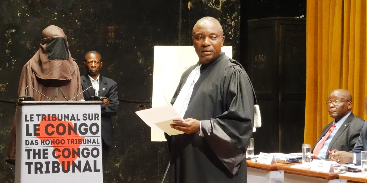 Richter Jean-Louis Gilissen haut mit dem Hammer auf den Tisch. „Ruhe, ich habe dem Publikum keine Redeerlaubnis erteilt“, sagt er wie ein Oberstudienrat. Der belgische Anwalt war schon am Internationalen Strafgerichtshof in Den Haag und beim Sondertribunal für den Genozid in Ruanda 1994 tätig. Dieselben Regeln wie vor den Weltgerichten wendet er jetzt auch auf der Bühne des „Kongo Tribunals“ an. Jeder erhält im Zeugenstand genau fünf Minuten Redezeit: Die Bäuerin, die von einer Minenfirma von ihrem Acker vertrieben wurde genauso wie der Provinzgouverneur, dem Gilissen mit eisernen Hammerschlägen den Mund verbieten muss. Zum ersten Mal sind in diesem fiktiven Gerichtssaal alle Menschen gleich.