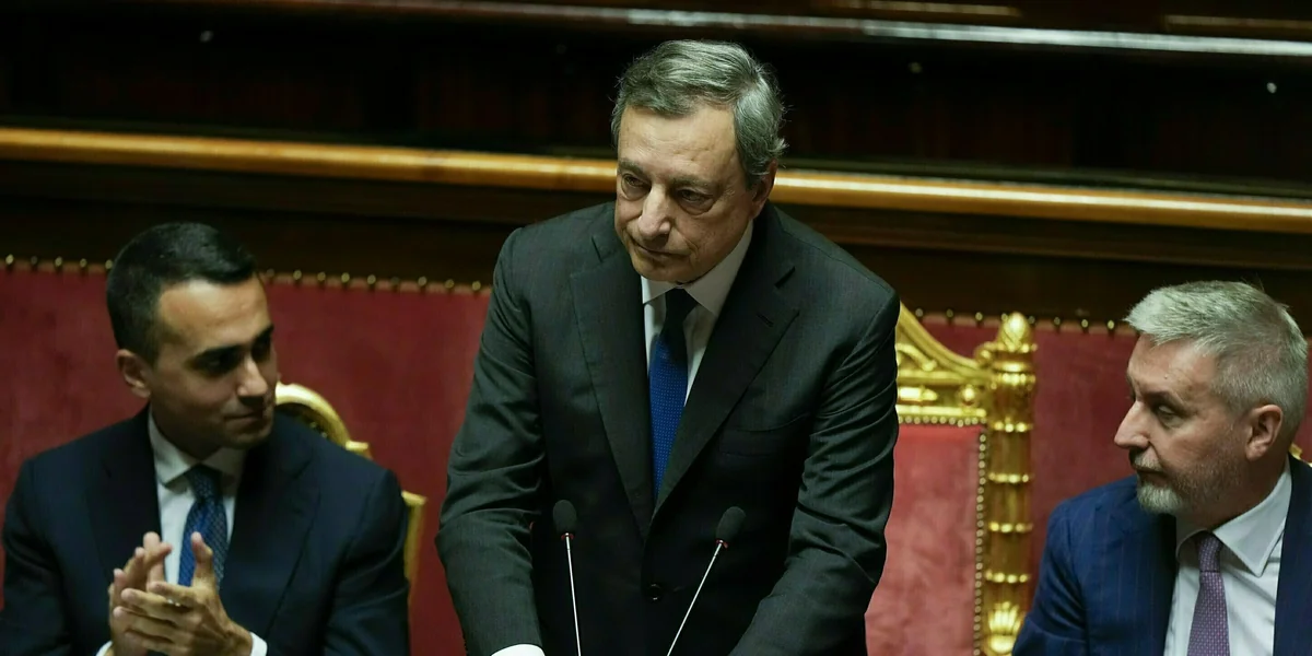 Draghi musste sich wegen der Regierungskrise zur aktuellen Lage äußern. Staatschef Sergio Mattarella hatten seinen Rücktritt am vergangenen Donnerstag abgelehnt. Diesen reichte Draghi ein, weil ihm die mitregierende Fünf-Sterne-Bewegung im Senat bei einer Abstimmung nicht das Vertrauen aussprach. Dieser Akt sei eine klare politische Geste, erklärte Draghi nun in seiner mit Spannung erwarteten Rede.