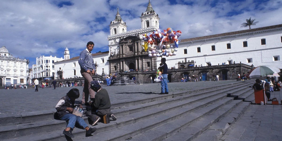 Quito, die Hauptstadt Ecuadors, liegt eingezwängt zwischen zwei Bergketten auf etwa 2.850 Meter Höhe und erstreckt sich 60 Kilometer von Nord nach Süd und bis zu 10 Kilometer von Ost nach West. Auf den Besucher wirkt sie manchmal wie ein kleines Wunderland. Vom Aussichtspunkt Panecillo aus scheint eine weiß-grau-gelbe Kruste weithin die Hügel zu überziehen. Bis zur Basilika reicht der koloniale Teil mit seinen 26 Kirchen, dahinter steigen im Dunst die Bürotürme des modernen Viertels La Mariscal hoch. Rund um die Plaza Foch reihen sich dort die Filialen von Subway und Juan Valdez Café, die Edelboutiquen und Mojito-Bars und Diskos. Lässig und gestylt geht es dort zu, international und aufgedreht.
