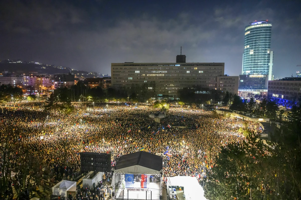 In der Slowakei kam es Freitagabend zu den größten Protesten seit Jahren. Zehntausende Menschen gingen in Bratislava und anderen Städten friedlich auf die Straße, um gegen den russlandfreundlichen und illiberalen Kurs der Regierung unter Robert Fico zu protestieren.