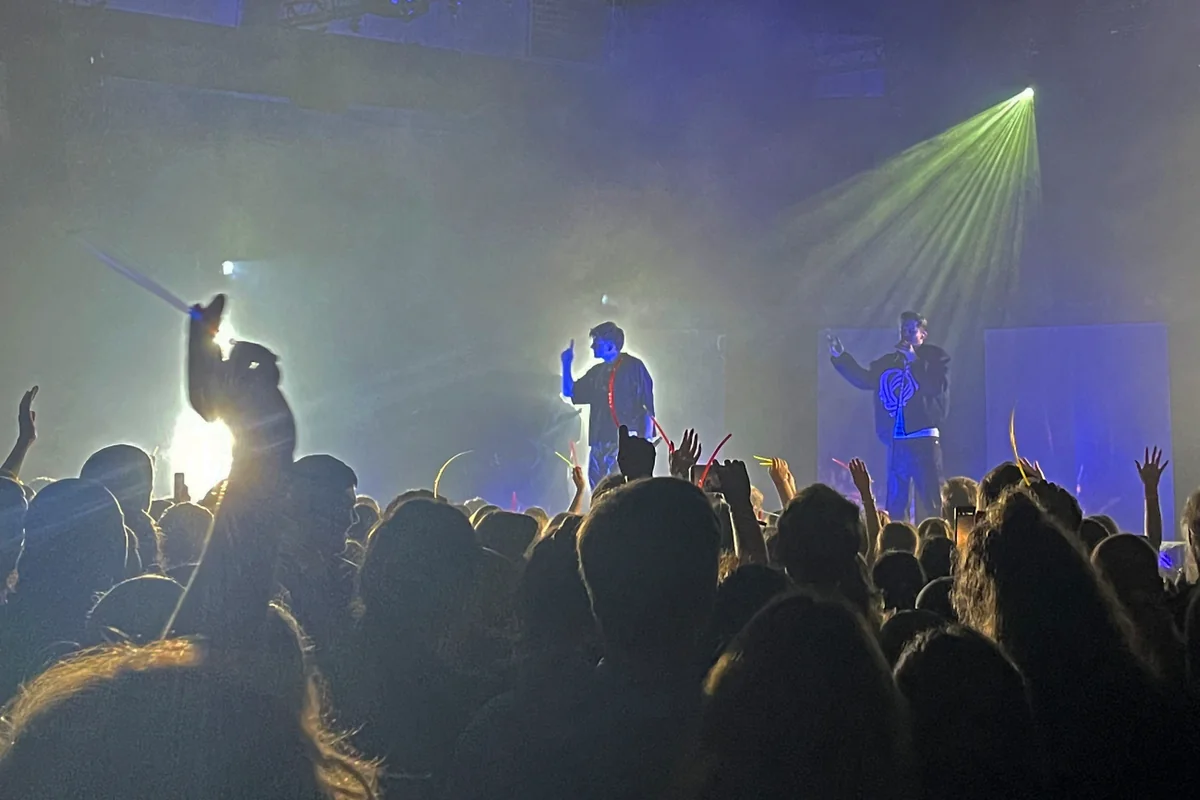 Als die Halle sich vollkommen verdunkelt, dröhnt eine Stimme aus den Lautsprechern, die verkündet: „Die To-be-honest-Tour 2025 beginnt jetzt!“ Der Vor-Act 2herzen kommt auf die Bühne, ebenfalls zwei christliche Rapper. Die Menge kreischt. Sie rasten aus, als einer der beiden in Doubletime über den Teufel und Jesus und das Angenommensein rappt.