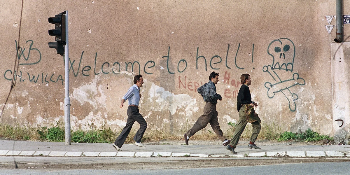 Drei Jahre lang führten serbische Nationalisten Krieg gegen das ehemals jugoslawische Bosnien, um dessen Unabhängigkeit zu verhindern. Ab 1992 belagerten sie die Hauptstadt Sarajevo. Täglich fielen von den umliegenden Bergen aus Raketen auf die Stadt und die rund 300.000 Bewohner:innen. Scharfschützen machten Jagd auf Menschen. „Einmal traf ein Sniper eine Frau, die direkt vor uns lief. Sie war sofort tot“, sagt Kašmo. Anfang 1996 war Sarajevo wieder frei. 11.000 Erwachsene und 1.500 Kinder fielen der Blockade zum Opfer. 55.000 Menschen wurden teilweise schwer verletzt.