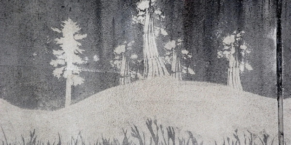 Eine der beiden Künstler holt ein weiteres Stück nasser Tapete aus einem Eimer, aus der die Form eines Vogels ausgeschnitten ist. Und bremst seinen Kollegen: "Ist gut, ist gut! Der Kontrast ist doch schon da, du reibst noch die Wand durch!" Als sie die neue Schablone an die Wand kleben und die alte entfernen, lässt sich schon ein Bild erkennen: Ein knapp 50 Zentimeter großer Baum aus sauberem Beton prangt auf der verdreckten Hauswand. Der ältere Herr lacht.