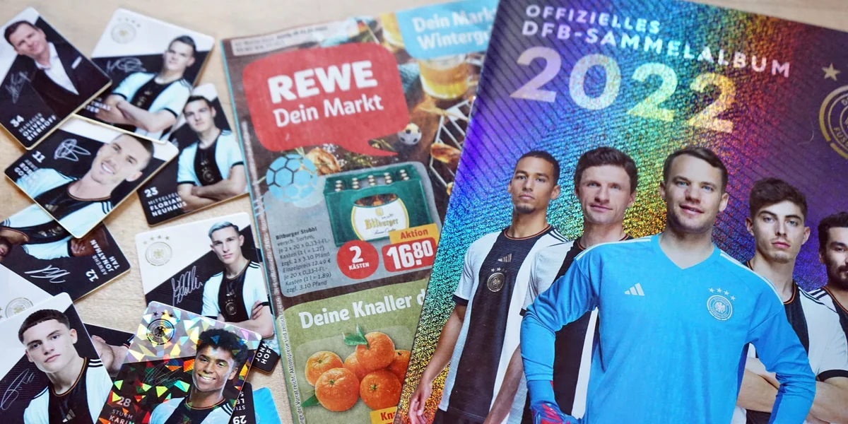 Weil der DFB auf die „One Love“-Armbinde in Katar verzichtet, will der Handelskonzern Rewe nicht mehr mit der WM werben. Sammelalben werden verschenkt.