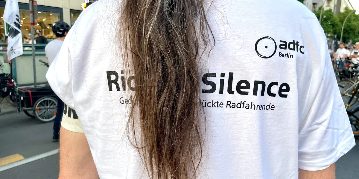 Der Mann im weißen T-Shirt sucht in den Tiefen seines Lastenrads. „Sind leider nur noch kleine Größen übrig“, teilt er einer älteren Frau bedauernd mit. Was er da gegen eine Spende von 10 Euro abgibt, sind weiße T-Shirts wie das, das er selbst trägt – genau genommen tragen es die meisten der mehreren hundert RadfahrerInnen, die sich am Mittwochabend vor dem Roten Rathaus versammeln. Darauf zu sehen ist das Logo der Demonstration, die der Berliner ADFC jedes Jahr um diese Zeit anmeldet: „Ride of Silence – Gedenken an verunglückte Radfahrende“.