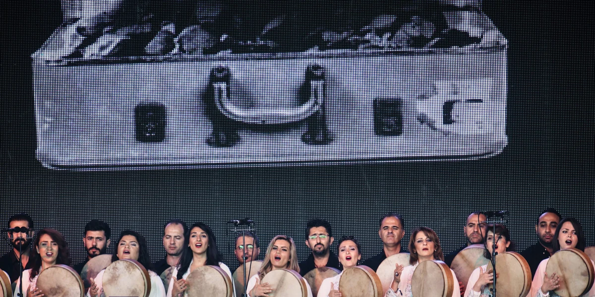 „Wir nutzen unseren Namen, um andere zu promoten, genau wie Damon Albarn“, sagt Peter Hvalkof. Der Blur-Sänger Albarn eröffnet das viertägige Festival am Mittwochabend mit dem ehemaligen syrischen Nationalorchester, das sich nun Orchestra of Syrian Musicians nennt. Die 50-köpfige Gruppe spielt ein weitgehend traditionelles, fast sperriges Set, für das Albarn als trojanisches Pferd fungiert, um 40.000 Menschen vor die Bühne zu locken.