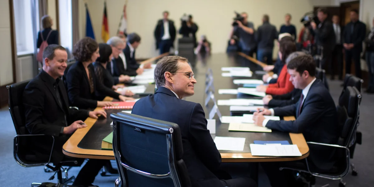 Die Räumlichkeiten, in denen es um 12 Uhr mittags losgehen soll, sind Müller und den meisten der zehn Senatorinnen und Senatoren gut bekannt. Und auch den Fraktionschefs, die ebenfalls dabei sind: Im Louise-Schröder-Saal handelten SPD, Linkspartei und Grüne ab Anfang Oktober rund sechs Wochen lang die bundesweit erste rot-rot-grüne Koalition unter SPD-Führung aus – beim schon seit 2014 regierenden gleichfarbigen Bündnis in Thüringen ist die Linkspartei stärkster Partner.
