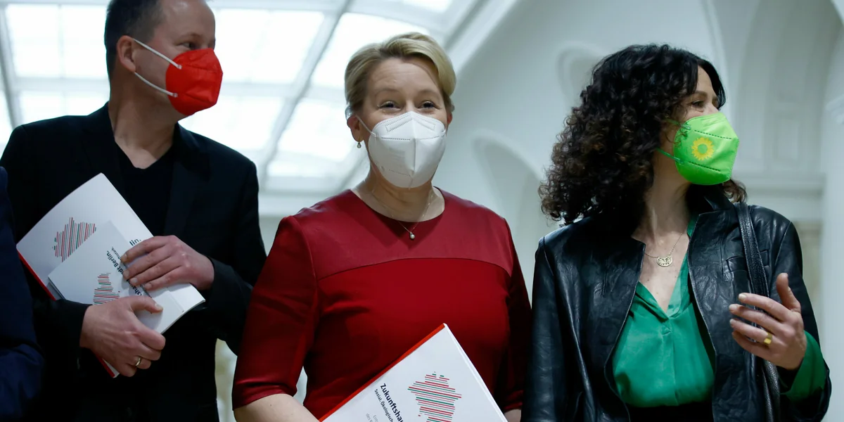 Der am Montag vorgestellte Koalitionsvertrag von SPD, Grünen und Linkspartei stellt bislang nur eine Einigung unter den Chefverhandlern dar. Bei allen drei Parteien hat das letzte Wort die Basis – bei der Linkspartei direkt, bei SPD und Grünen über die Delegierten von Parteitagen. Zuerst entscheiden am 5. Dezember die Sozialdemokraten, eine Woche später die Grünen. Am 17. oder 18. Dezember soll das Ergebnis der Abstimmung unter den 8.051 Linksparteimitgliedern vorliegen. Hier haben Kritiker zwar einen Sonderparteitag durchgesetzt. Entscheidend bleibt aber das direkte Votum der Mitglieder. Erst wenn alle drei Parteien zugestimmt haben, unterschreiben ihre Spitzen den Vertrag. Franziska Giffeys Wahl zur ersten Regierenden Bürgermeisterin Berlins im Abgeordnetenhaus ist für den 21. Dezember geplant. Die anderen zehn Senatsmitglieder werden nicht gewählt, sondern von ihr ernannt. (sta)