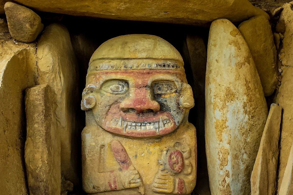 Nach heutigem Kenntnisstand lebten die Erschaffer dieser Steinstatuen zwischen 3.300 v. Chr. und 1.530 n. Chr. in der Region um San Agustín im Südwesten Kolumbiens. Bis heute ist über die dortige Kultur nur wenig bekannt, der archäologische Park San Agustín ist Unesco-Weltkulturerbe. Insgesamt wurden dort hunderte der detailreichen Statuen entdeckt. Besonders sind sie durch ihre detailgetreuen Gesichter. Sie sollen Götter und Dämonen darstellen, die vermutlich spirituellen Zwecken und als Tempelwächter dienten.