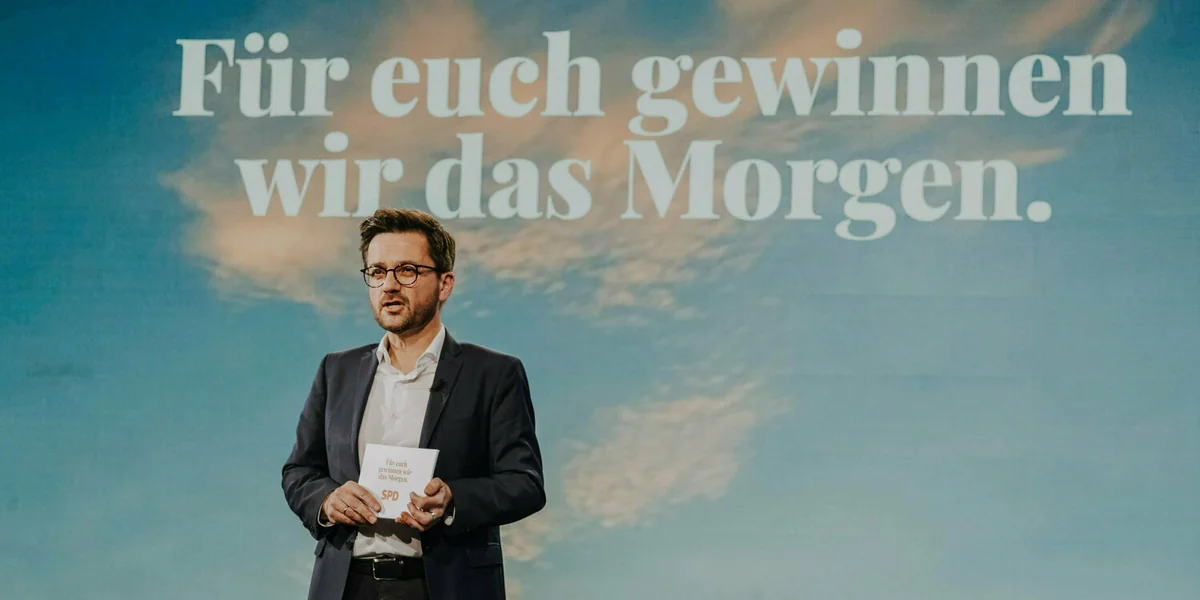 Wahlparteitage dienen der Inszenierung von Einigkeit nach außen und Selbstermutigung nach innen. Und eigentlich läuft bis zur Hanau-Debatte alles wie geplant Die Kampagne ist ganz auf Kutschaty, den früheren Justizminister, zugeschnitten. Er steht – offenes Hemd, keine Krawatte, Jeans – vor der Fotowand eines offenen Himmels. „Für euch gewinnen wir das Morgen“ steht darauf. Wir für euch – es ist das alte, leicht paternalistische Selbstbild der SPD, die sich kümmert und alles regelt.