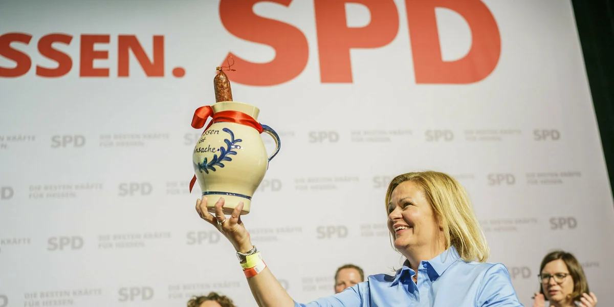 Im Saal kommt das an. Immer wieder wird Faesers Rede von Applaus unterbrochen, gerade bei den Ansagen gegen rechts. Den Parteitag trägt ein Gefühl, dass im Oktober wirklich etwas gehen könnte. Das befeuert auch der angereiste SPD-Parteichef Lars Klingbeil, der erklärt, „Nancy ist das Beste, was Hessen passieren kann“. Er habe „ein gutes Gefühl“, dass die „leere“ schwarz-grüne Regierung abgelöst werden könne. Auch Kanzler Olaf Scholz schickt ein Videostatement, in dem er Faeser als „fröhlich, entschieden, mit Weitblick“ preist.