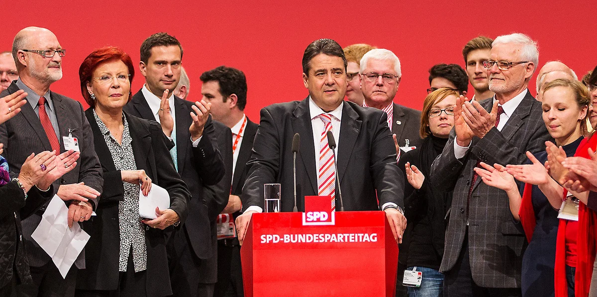 Nach dieser Schelte versuchte der SPD-Chef die trübsinnige Stimmung beim Leipziger Parteitag am Samstag aufzuhellen. „Wir werden“, so das Versprechen, den SPD-Mitgliedern „keinen Koalitionsvertrag vorlegen, der unklar ist“. Es werde ein Bündnis mit Angela Merkel nur geben, wenn die zentralen SPD-Forderungen fixiert seien – gesetzlicher Mindestlohn von 8,50 Euro, Regulierung von Leiharbeit und Werkverträgen, abschlagfreie Rente mit 63 nach 45 Arbeitsjahren.