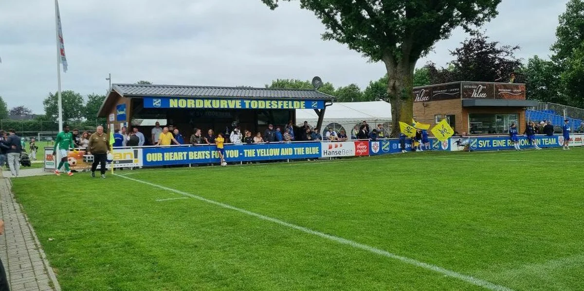 Viele haben einen gelb-blauen Schal um und sind in sichtlich ausgelassener Stimmung. Grund genug haben sie dafür: Ihr örtlicher Sportverein hat heute sein letztes Saisonspiel, doch schon vor dem Anpfiff gegen Werder Bremens zweite Mannschaft ist klar, dass in der kommenden Saison auf den Todesfelder Sportplatz nicht mehr Nordmark Satrup oder Hohenweststedt zu Gast sein werden. Der kleine SV Todesfelde spielt künftig in der viertklassigen Regionalliga Nord. Dann werden einige Vereine in die dünnbesiedelte Mitte Schleswig-Holsteins anreisen müssen, die in besseren Zeiten auch schon mal in der 2. Bundesliga kickten: der VfB Lübeck etwa oder der VfB Oldenburg.